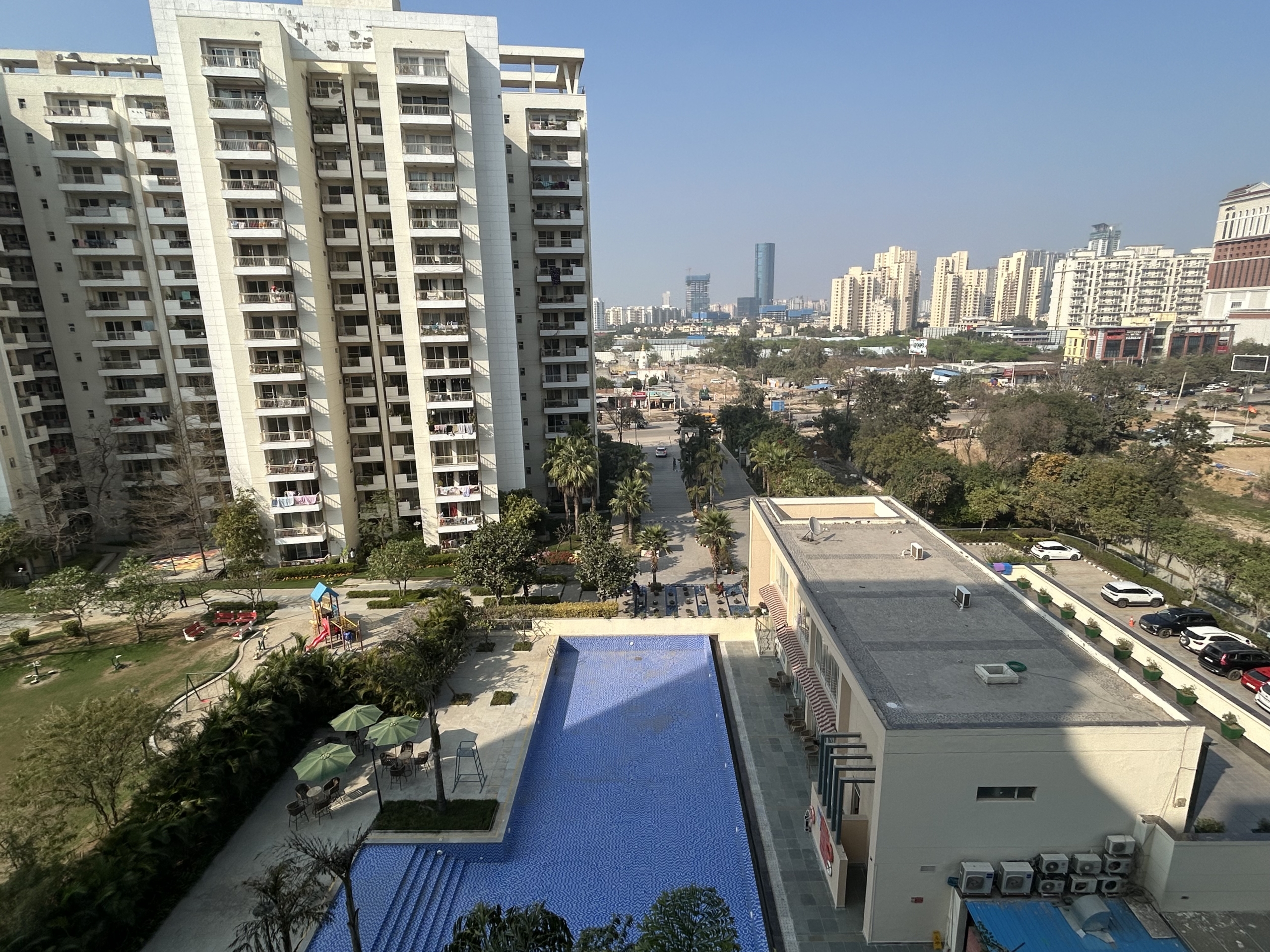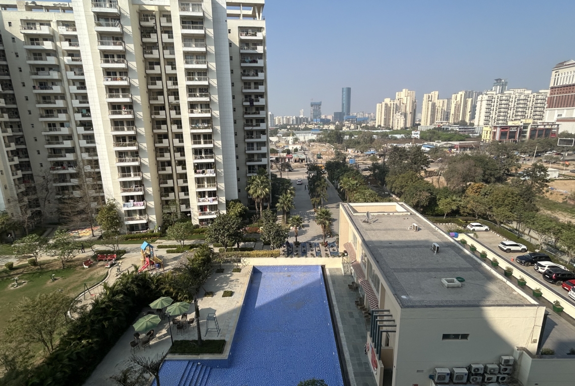 3+1 semi furnished with 4 AC’s with 5 balconies on 7th floor with great view of the swimming pool, Bestech park view spa next in sector 67, Gurgaon